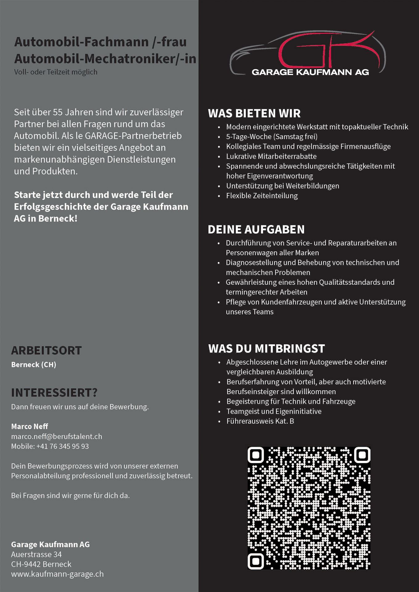 Automobil-Mechatroniker/in, 4 Lehrjahre